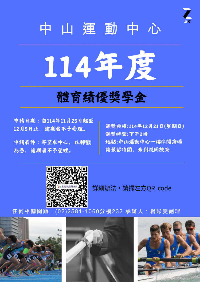 114年體育績優獎學金開放申請 符合資格就有機會申請體育績優獎學金 趕快來看看自己是不是符合條件 申請時間:11/25-12/05 頒獎時間:12/21(日)下午2點(沒來就視同放棄),請預留時間 申請辦法:https://reurl.cc/6bDD4d 附件資料要準備完整,缺一不可!